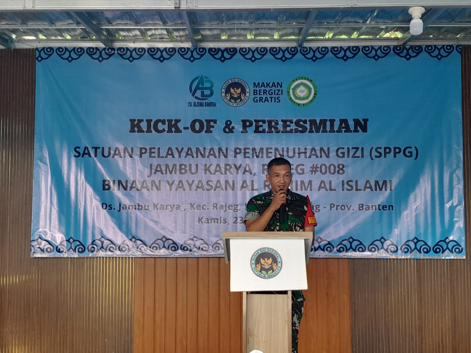 Danramil 12/Rajeg Kapten Inf Teguh Rusmadi menghadiri Pembukaan Satuan Pelayanan Pemenuhan Gizi (SPPG) di lokasi MBG Desa Jambu Karya Kp Jambu RR 002 /RW 001 Desa Jambu Karya Kec Rajeg,Kab Tanggerang,Kamis 23 April 2026.