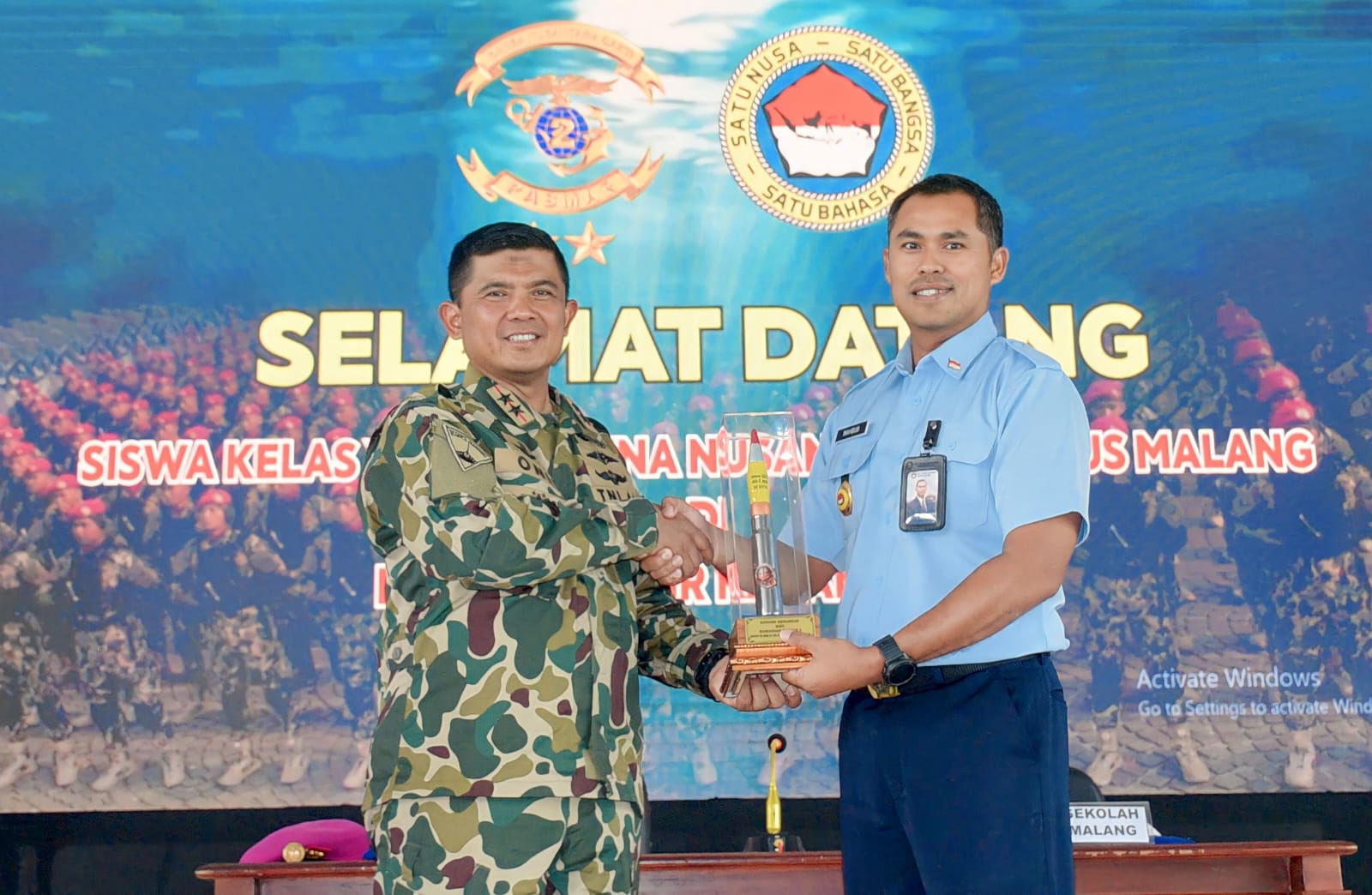 Dispen Kormar TNI Angkatan Laut (Surabaya). Komandan Pasmar 2 Mayjen TNI (Mar) Dr. Oni Junianto, memberikan pembekalan kepada siswa-siswi SMA Taruna Nusantara Kampus Malang, di Indoor Sport Kesatrian Marinir Sutedi Senaputra, Karangpilang, Surabaya, Jumat (24/04/2026).