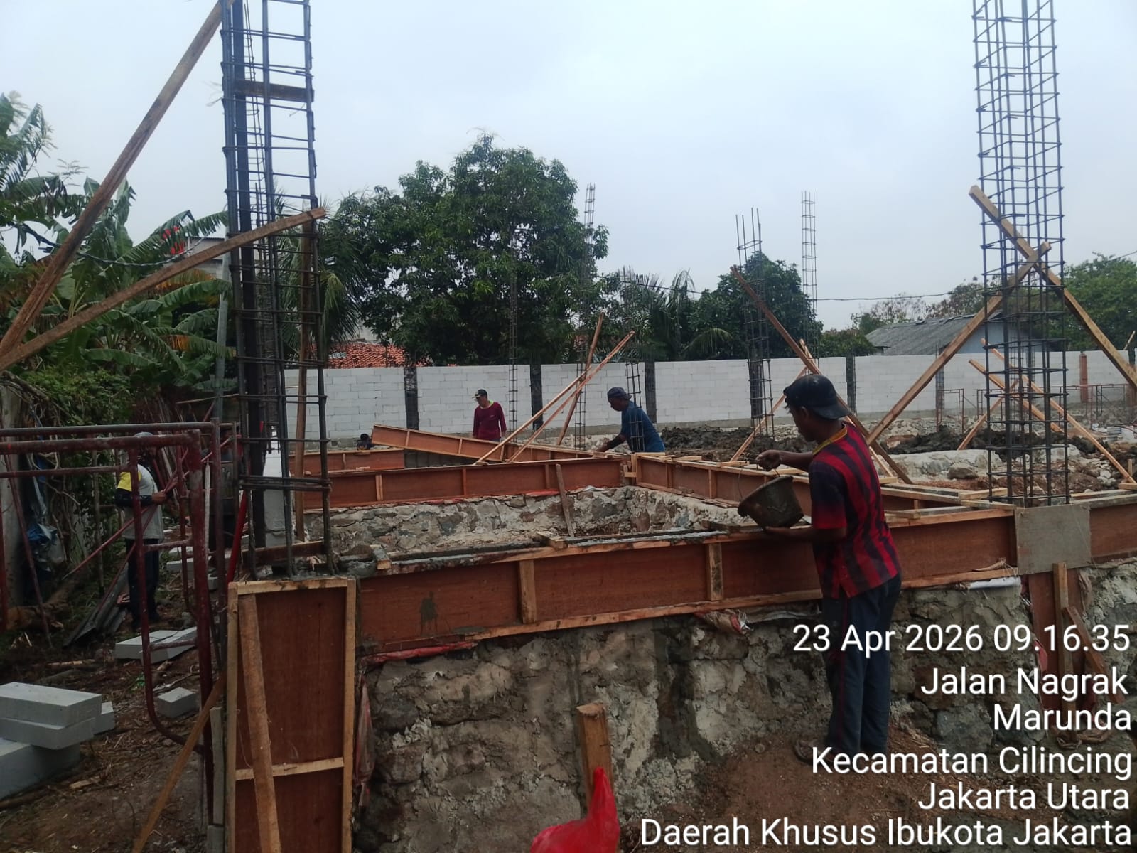 Memasuki hari ke 24 pekerjaan pembangunan koperasi desa/kelurahan merah putih (KDKMP) di wilayah Kodim 0502/JU Jajaran Korem 052/Wkr,22 oramg tukang terus genjot sehingga hasilnya capai 15,07%,Kamis 23 April 2026.