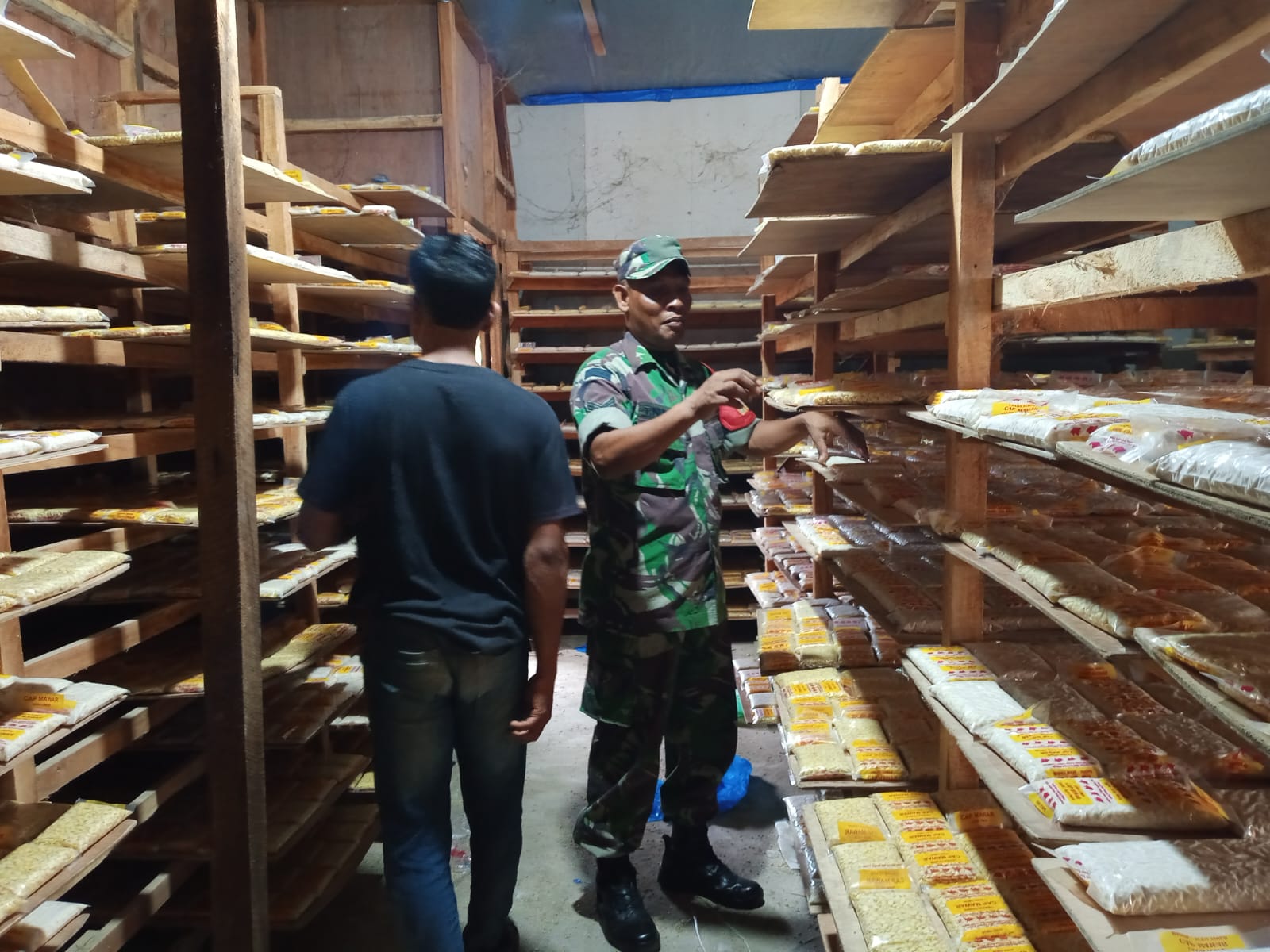Dalam kegiatan tersebut, Sertu Nurdin tidak hanya memantau proses produksi, tetapi juga berdialog langsung dengan pelaku usaha guna mengetahui perkembangan serta kendala yang dihadapi. Kehadiran Babinsa di tengah-tengah masyarakat diharapkan mampu memberikan motivasi dan semangat bagi pelaku usaha kecil agar terus berkembang.