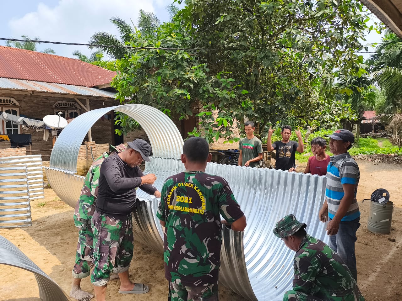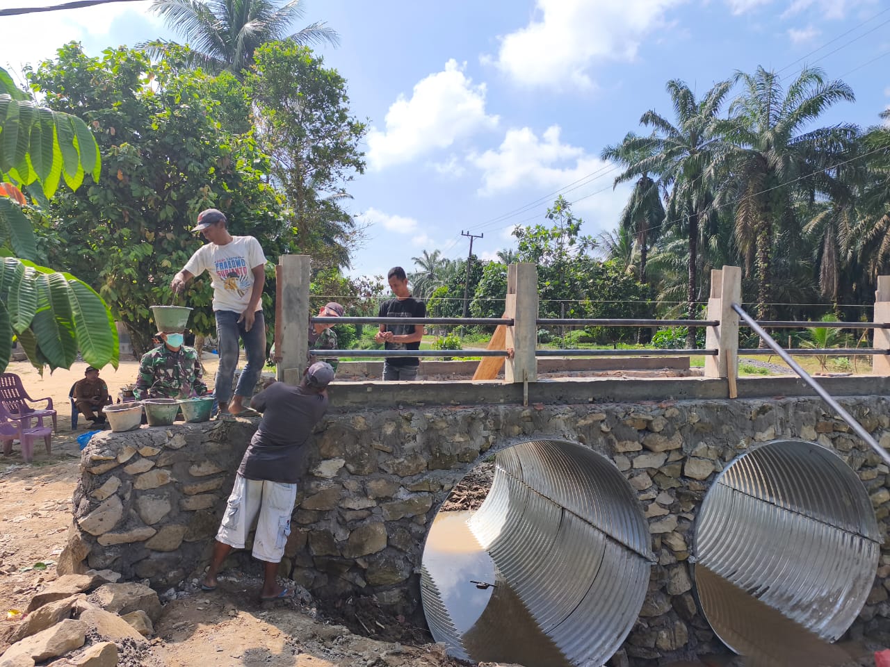 Pembangunan jembatan sepanjang tujuh meter tersebut dilaksanakan oleh personel Kodim 0209/Labuhanbatu bersama masyarakat setempat melalui semangat gotong royong. Dengan memanfaatkan peralatan sederhana seperti cangkul, sekop, angkong, dan linggis, seluruh tahapan pekerjaan dapat diselesaikan dengan optimal hingga jembatan berdiri kokoh.