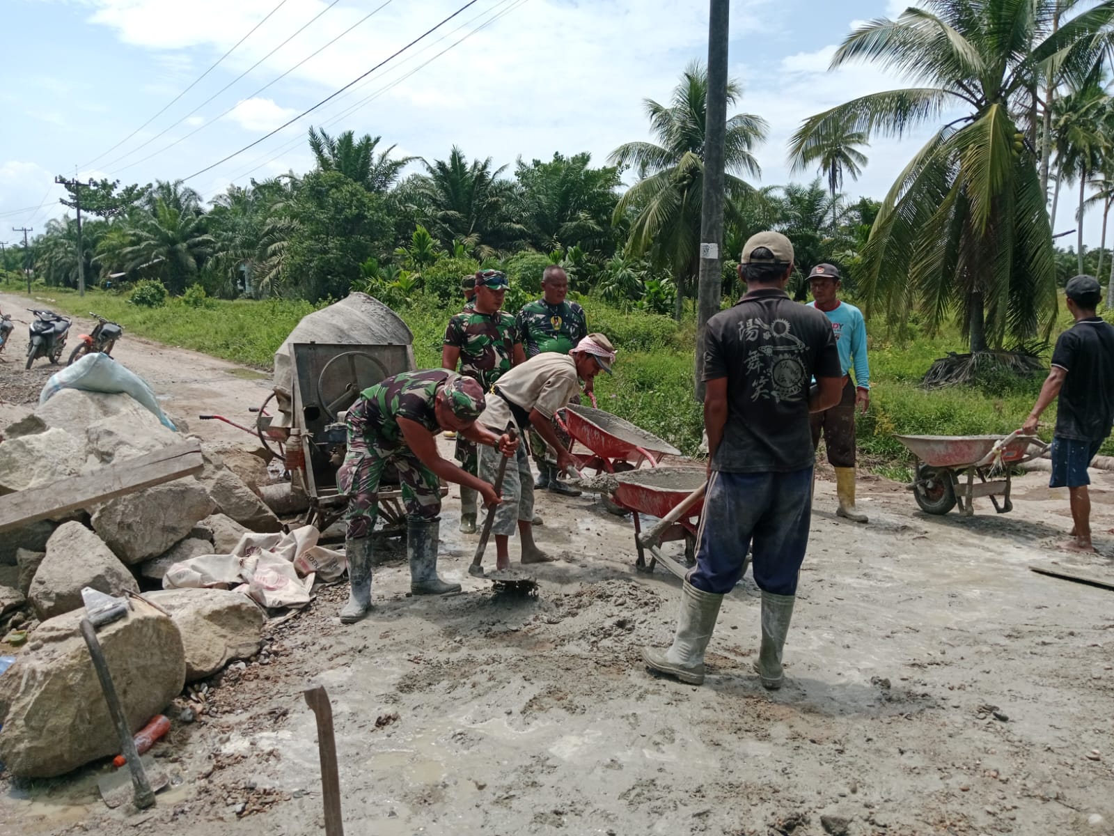 Dalam proses pengerjaan, digunakan berbagai peralatan pendukung seperti excavator, cangkul, sekop, angkong, linggis serta peralatan pendukung lainnya guna mendukung kelancaran pekerjaan di lapangan. Pembangunan jembatan ini menjadi wujud komitmen TNI AD melalui Kodim 0209/Labuhanbatu dalam membantu percepatan pembangunan infrastruktur bagi masyarakat.