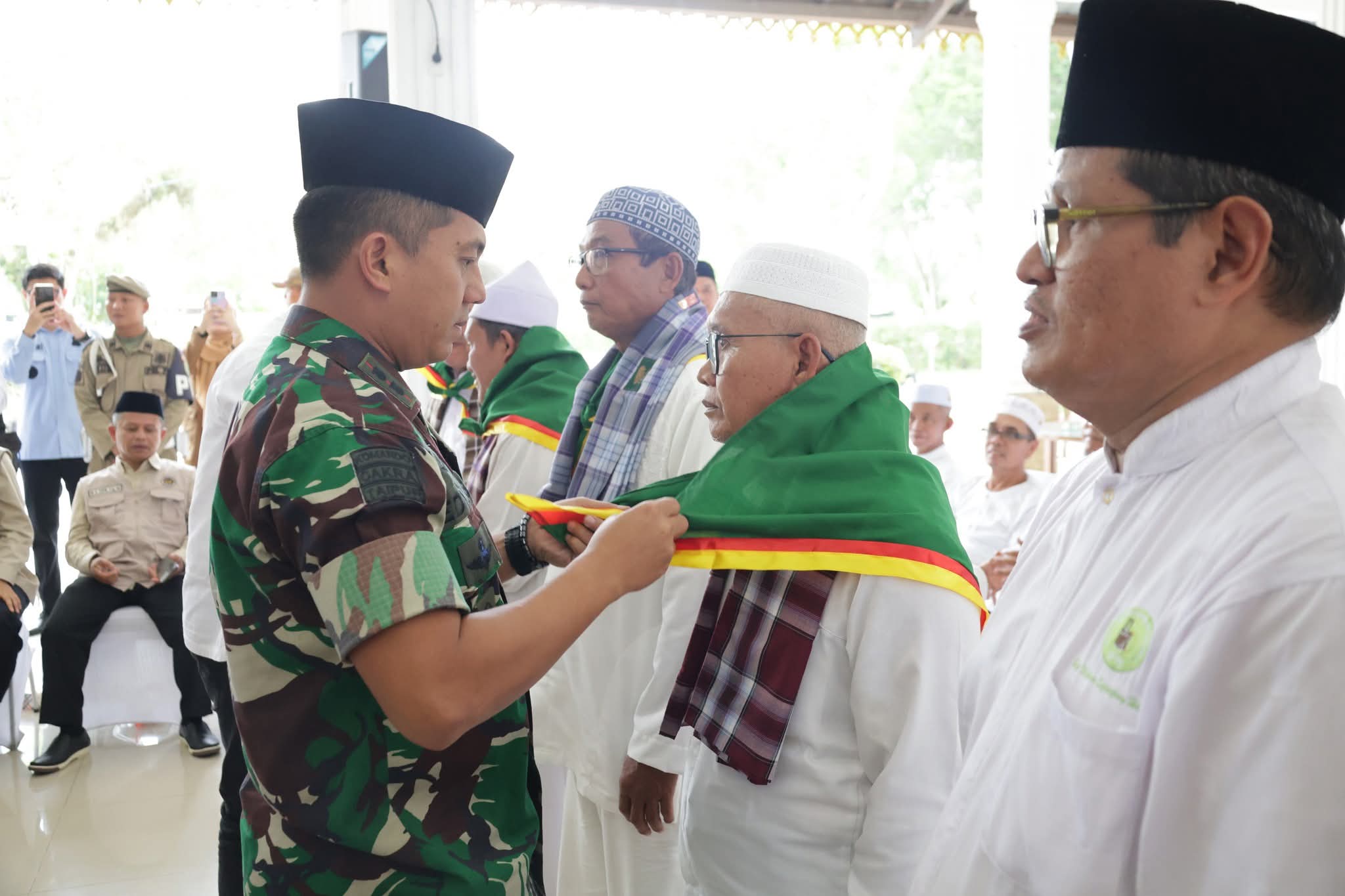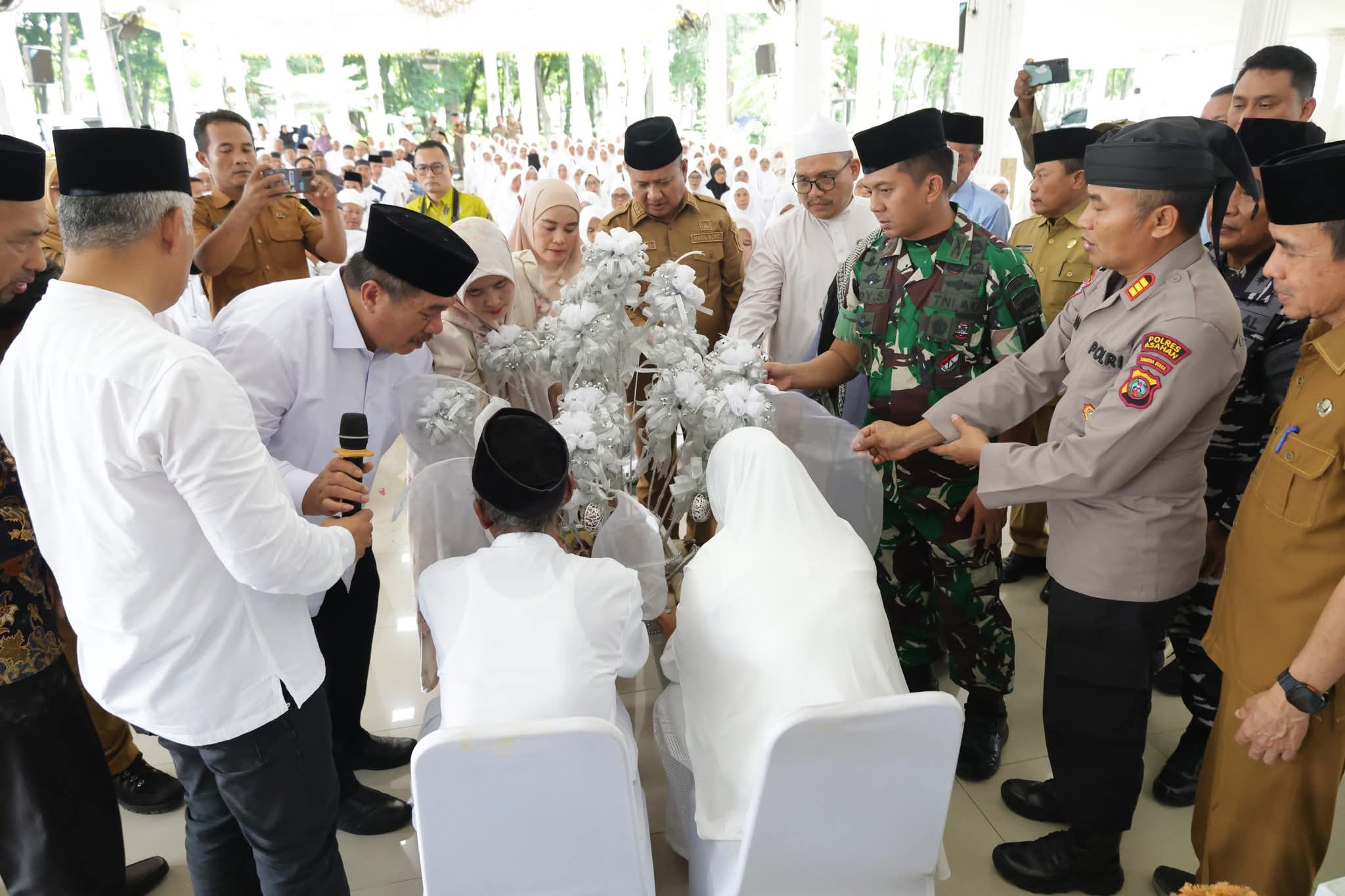 Asahan – Komandan Kodim (Dandim) 0208/Asahan Letkol Inf Edy Syahputra, S.H., M.I.P. bersama Bupati Asahan Taufik Zainal Abidin, S.Sos., M.Si. dan unsur Forum Koordinasi Pimpinan Daerah (Forkopimda) Kabupaten Asahan melaksanakan kegiatan upah-upah kepada 241 jamaah haji asal Kabupaten Asahan, sebagai bentuk do’a dan harapan agar seluruh jamaah diberikan kesehatan, keselamatan, serta kelancaran dalam menunaikan ibadah haji, Selasa (21/4/2026).
