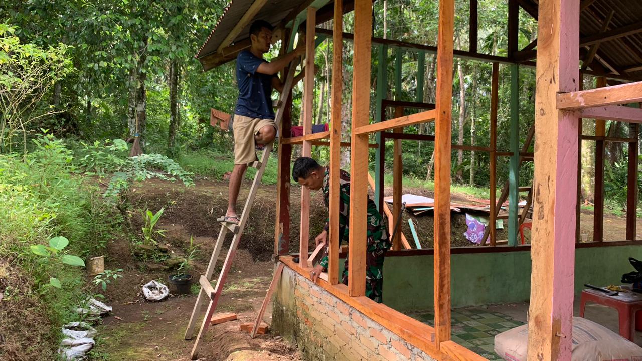 Dengan semangat gotong royong, anggota Satgas TMMD dan warga bahu-membahu mengerjakan renovasi rumah tersebut. Mulai dari perbaikan struktur bangunan hingga penyempurnaan bagian dalam rumah dilakukan secara bertahap agar hunian tersebut dapat segera ditempati dengan layak.