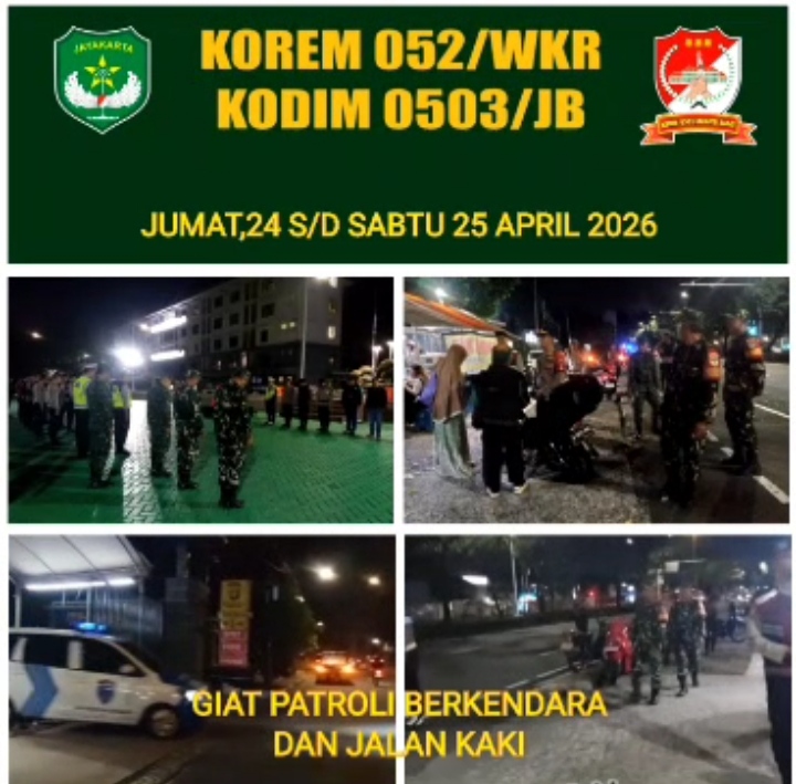 Sinergitas personel TNI Polri di wilayah Jakarta Barat mewujudkan kondusifitas wilayah teritorial,dan sekaligus memberikan rasa ama dan nyaman masyarakat.Hal inilah yang rutin dilaksanakan TNI Polri di Jakarta Barat,Sabtu 25 April 2026 dimulai pukul 23.00-subuh. Kegiatan rurin Patroli Jalan Kaki dan Berkendara Gabungan TNI POLRI di Polres Metro Jakarta Barat rutin dilaksanakan.