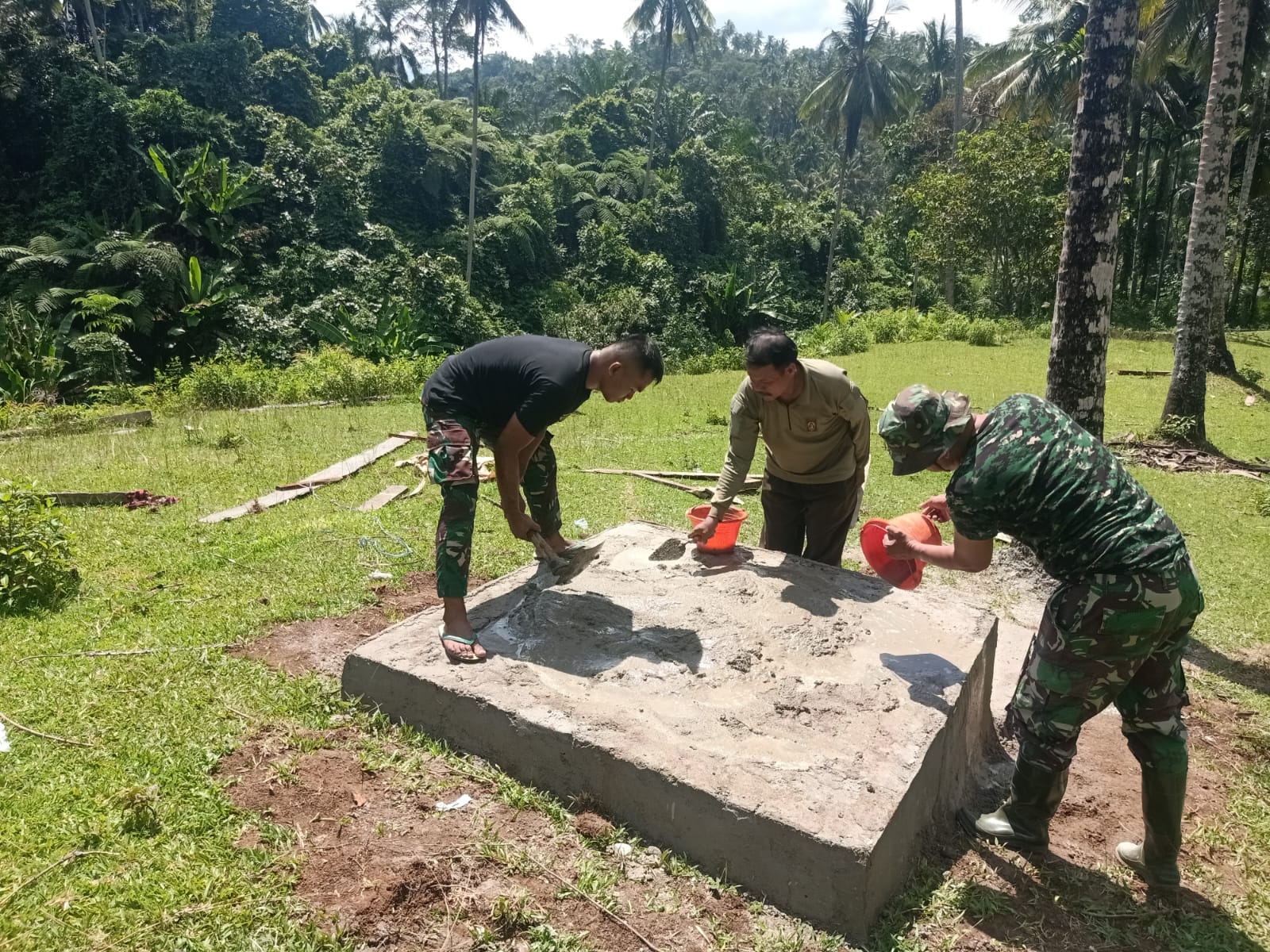 Anggota Satgas TMMD bersama warga tampak bergotong royong dalam proses pengerjaan sumur. Kebersamaan dan semangat kekeluargaan terlihat jelas, mencerminkan kemanunggalan TNI dengan rakyat. Proses pembangunan dilakukan secara bertahap dengan tetap mengutamakan kualitas agar sumur dapat dimanfaatkan dalam jangka panjang.