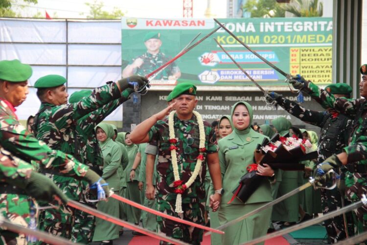 Sebagai simbol penghormatan, kesinambungan kepemimpinan, dan penghargaan atas pengabdian selama bertugas,seluruh personel Kodim 0201/Medan Jajaran melaksanakan Acara Tradisi Korps Pedang Pora Penyambutan dan Pelepasan Dandim 0201/Medan,Sabtu 25 April 2026,sekira pukul 14.10 Wib,bertempat di Makodim 0201/Medan, Jl. Pengadilan No.8, Petisah Tengah, Kec. Medan Petisah, Kota Medan.