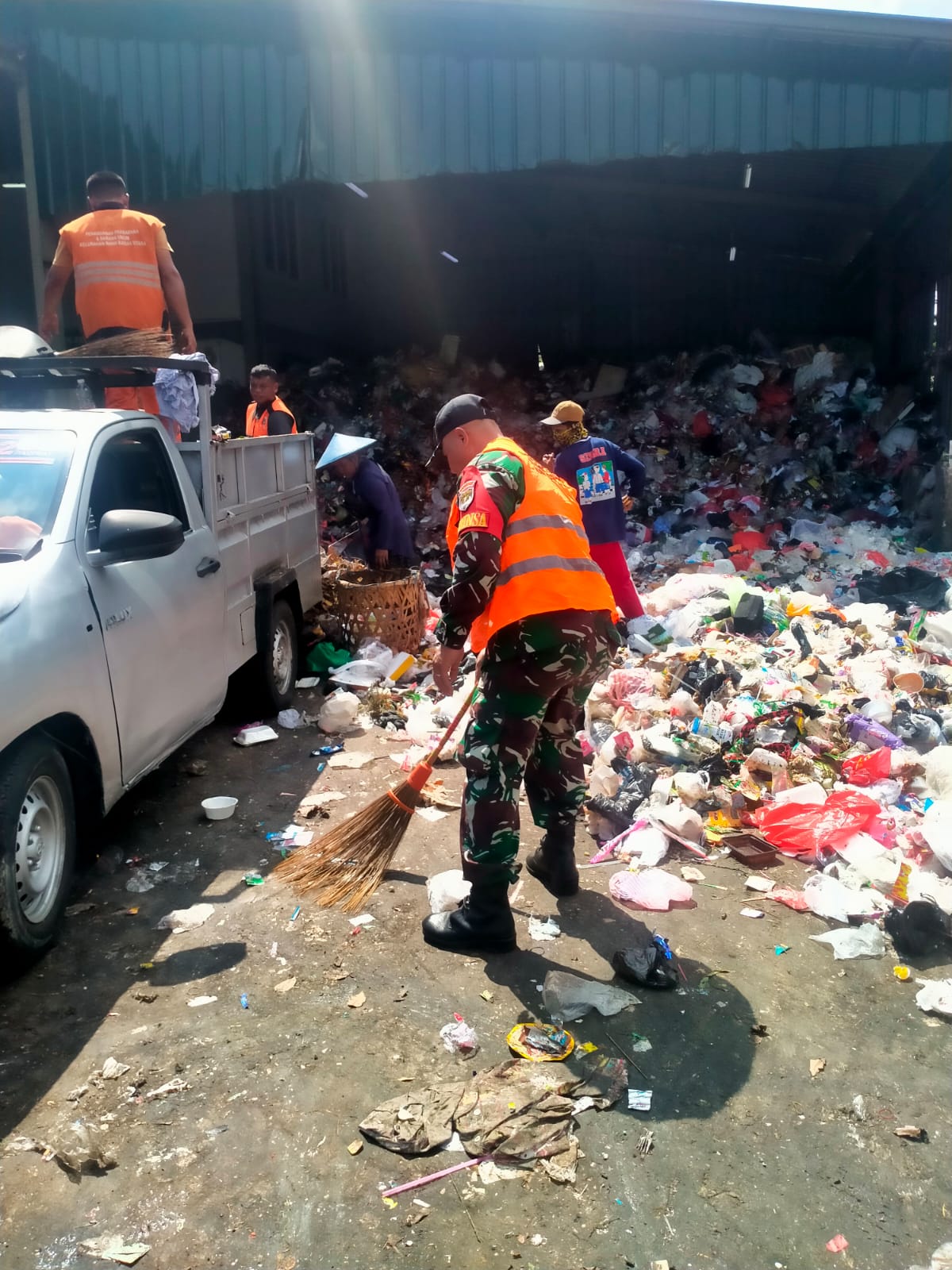 Cuaca yang panas turut mendukung kelancaran kegiatan, mulai dari mobilisasi kendaraan operasional hingga proses pengangkutan sampah.