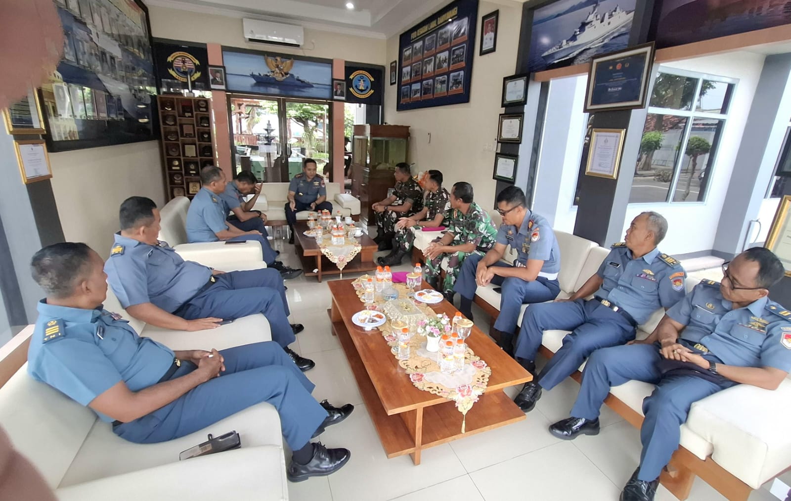 Kegiatan diawali Danpuslatpurmar 5 Baluran dengan mengunjungi Pangkalan Angkatan Laut (Lanal) Banyuwangi diterima langsung oleh Danlanal Banyuwangi Letkol Laut (P) Muhamad Puji Santoso, M.Sc. beserta Perwira Staf di Mako Lanal Banyuwangi. Pertemuan yang hangat dan harmonis ini, diakhiri dengan foto bersama.