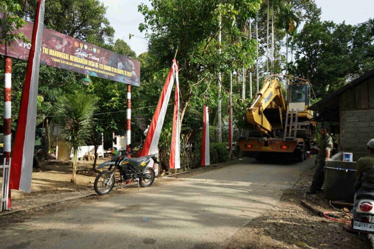 “Untuk mempercepat pengerjaan, hari ini kami kembali menurunkan satu unit excavator. Mengingat kondisi geografis di pegunungan cukup menantang, alat berat sangat dibutuhkan agar pekerjaan lebih maksimal,” ujar Kapten Faryanda.