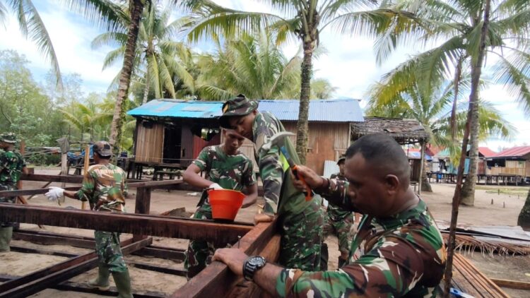 Timika, okebung99.com – Memasuki akhir pekan pertama pelaksanaan TMMD Reguler ke-128 Kodim 1710/Mimika, pembangunan rumah terus digenjot oleh personel Satgas bersama warga setempat. Hingga saat ini, pengerjaan sasaran fisik tersebut terus menunjukkan perkembangan yang positif. Senin (27/4/2026).