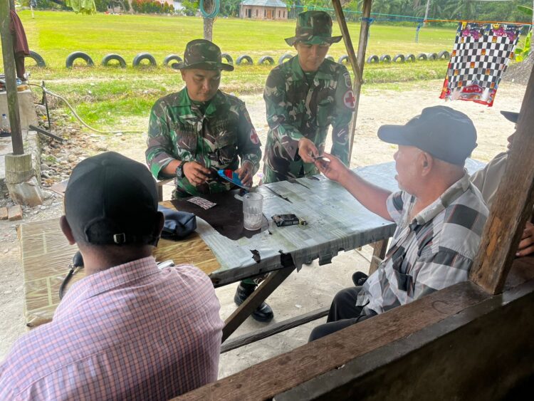 Anggota Satgas TMMD 128 Kodim 0203/Lkt turun langsung ke lapangan dengan melakukan pengecekan kesehatan warga secara door to door.Kegiatan ini dilakukan untuk memastikan kondisi kesehatan masyarakat tetap terjaga selama pelaksanaan program TMMD berlangsung.
