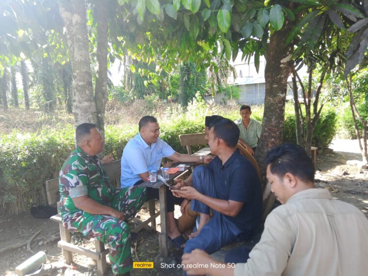 OKEBUNG – Babinsa Koramil 07/Babahrot Kodim 0110/Abdya, Pelda Hanif, melaksanakan komunikasi sosial (komsos) bersama perangkat Desa Cot Sumantok dalam suasana santai namun penuh makna, guna membahas upaya memaksimalkan program pembangunan di berbagai bidang.