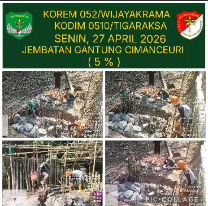 Kehadiran TNI AD di tengah masyarakat kembali memberikan bukti nyata kepedulian terhadap pembangunan wilayah.Kali ini Kodim 0510/Tigaraksa berkomitmen untuk mengatasi kesulitan masyarakat dengan membangun Jembatan Garuda di wilayah Koramil 06/Trs Kodim 0510/Trs,Senin 27 April 2026.