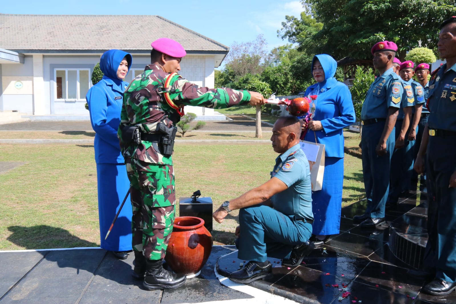Rangkaian acara berlangsung semarak dengan tradisi khas mandi kembang sebagai simbol pembersihan diri dan kesiapan mengemban amanah baru. Dalam amanatnya, Letkol Marinir Alamsyah menekankan bahwa kenaikan pangkat bukanlah sekadar rutinitas administratif, melainkan wujud apresiasi Negara dan Pimpinan TNI.