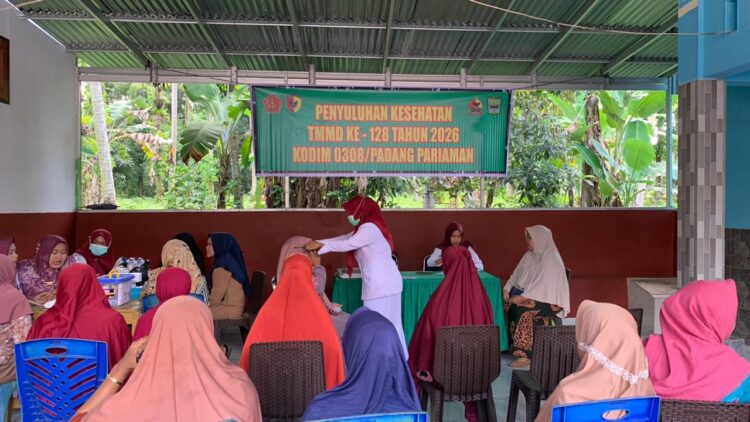 PADANG PARIAMAN, – Dalam rangka mendukung program TNI Manunggal Membangun Desa (TMMD) Ke-128 Tahun 2026, kegiatan penyuluhan kesehatan digelar di Posko TMMD yang berlokasi di Korong Balai Kamih, Nagari Sungai Geringging Kuranji Hulu, Kabupaten Padang Pariaman, Selasa (28/04/2026).