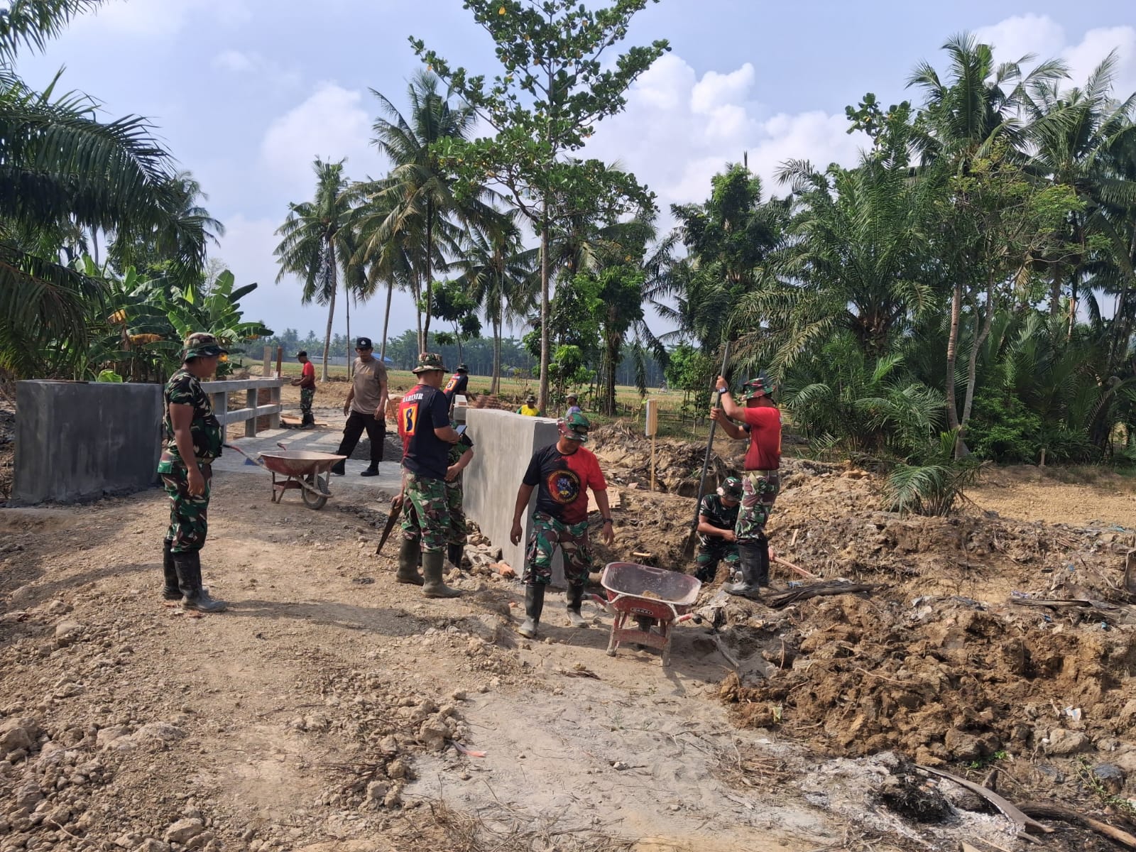 Selain jembatan,Satgas juga mengerjakan pengerasan jalan sepanjang 1,5 kilometer, normalisasi parit dengan panjang serupa, serta rehabilitasi rumah tidak layak huni bagi warga.