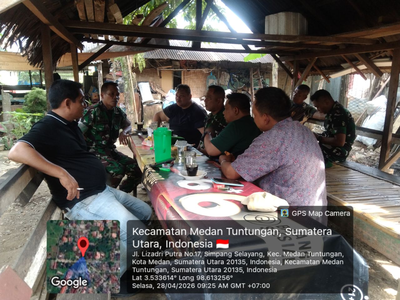 Demi menjalin keakraban dengan warga binaan yang merupakan tugas pokok Babinsa. Salah satunya dengan melakukan Komsos Bersama warga di warung kopi bapak marzuki jln lizardi putra Kel simpang selayang kec medan tuntungan, guna menciptakan interaksi serta kekompakan dengan warga binaan. Seperti yang dilakukan oleh Babinsa Koramil 0201-07/MT, Pld Edy Tia Sentosa dan Srm P Sijabat. Selasa ( 28/4/2026 )