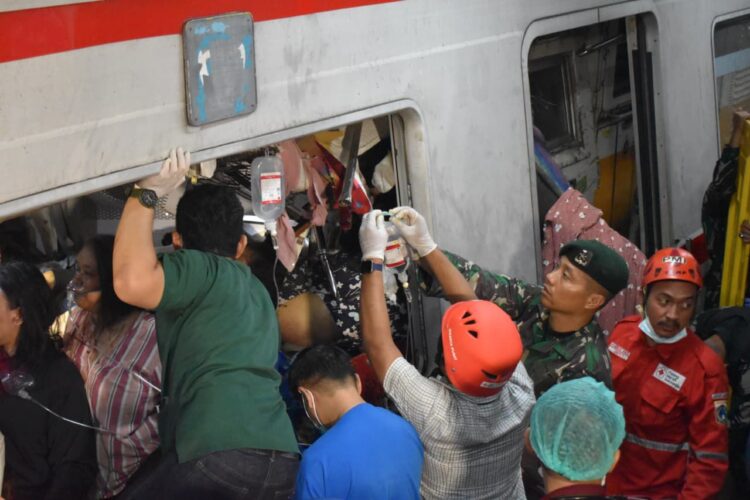 Kodam Jaya – Bekasi. Prajurit Kodam Jaya/Jayakarta dari Yonif 202/Tajimalela (TM) dan Kodim 0507/Bekasi bergerak cepat mengevakuasi dan mengamankan lokasi kecelakaan KA Argo Bromo Anggrek dengan KRL jurusan Cikarang–Jakarta di Jalur 1 dekat Stasiun Bekasi Timur, Senin (27/04/2026) pukul 20.30 WIB.