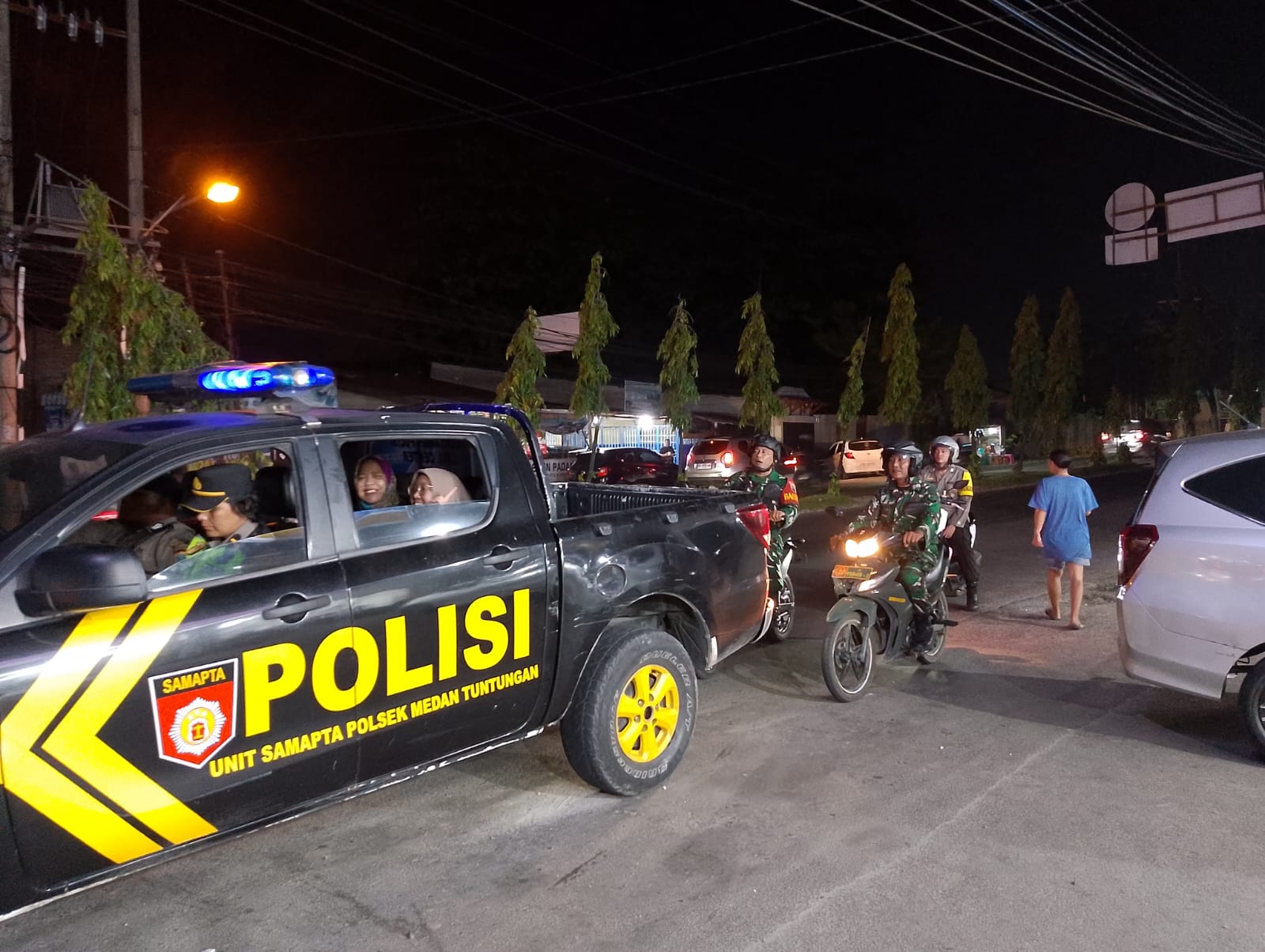 Patroli gabungan ini dilaksanakan mulai pukul 22.00 wib diawali dengan apel pengecekan di lapangan apel Polsek Medan Tuntungan hingga pembagian rute patroli dan tugas menurut fungsi serta kewenangan setiap instansi.