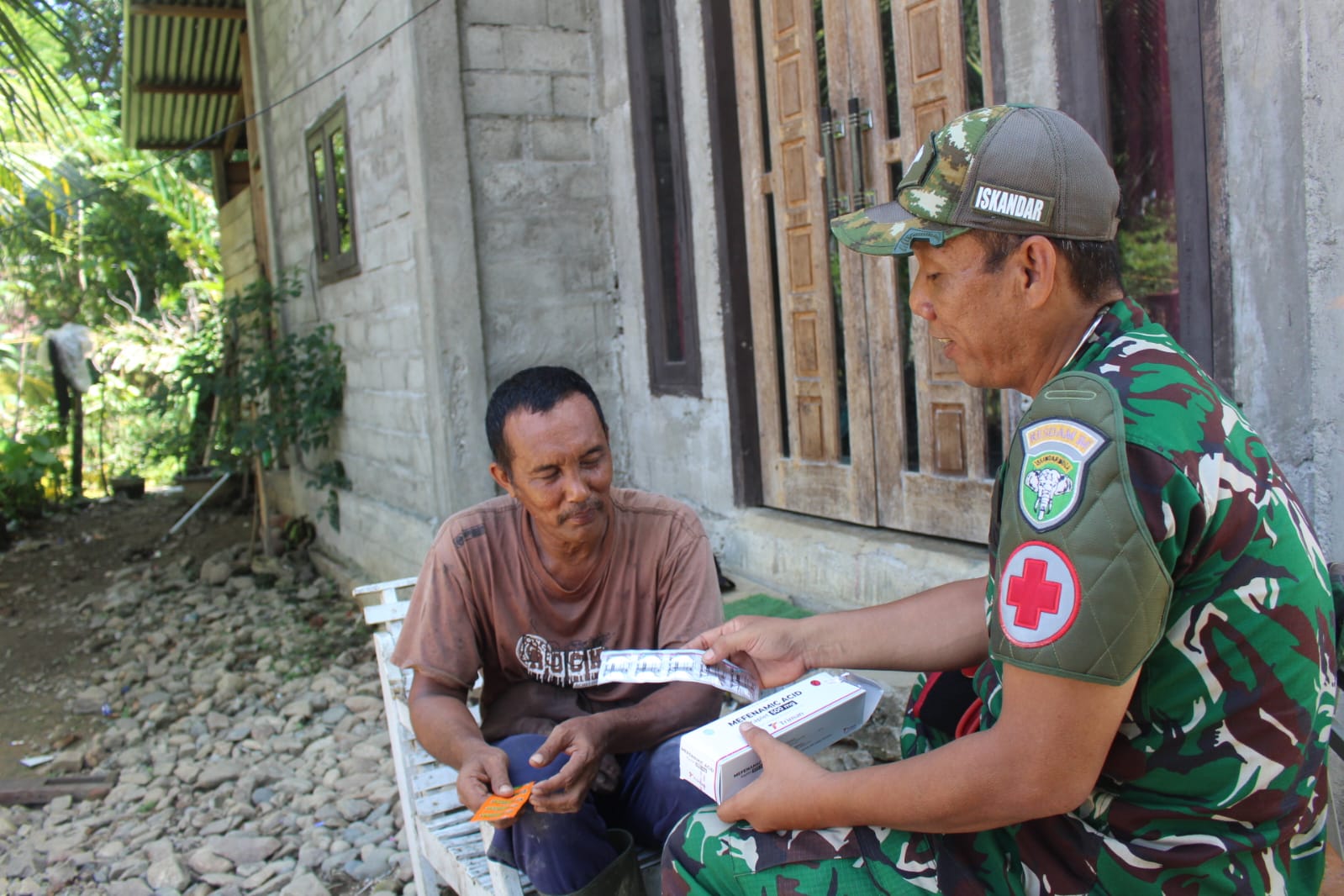 Selain fokus pada pembangunan infrastruktur, Satgas TMMD juga turut memberikan pelayanan kesehatan langsung ke rumah-rumah warga yang sedang sakit ataupun memberikan pelayanan kesehatan Door To Door, di Desa Gunung Cut Kecamatan Tangan-tangan, Rabu (29/4/2026).