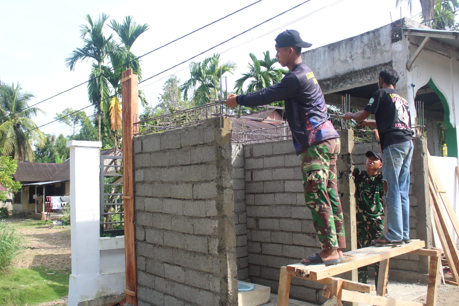 Salah satu titik yang menjadi fokus pengerjaan berada di Mushola Al Mukaramah Tengku Cik Raja Lim. Di lokasi tersebut, personel Satgas dan warga terlihat bahu-membahu menyelesaikan setiap tahapan pembangunan.